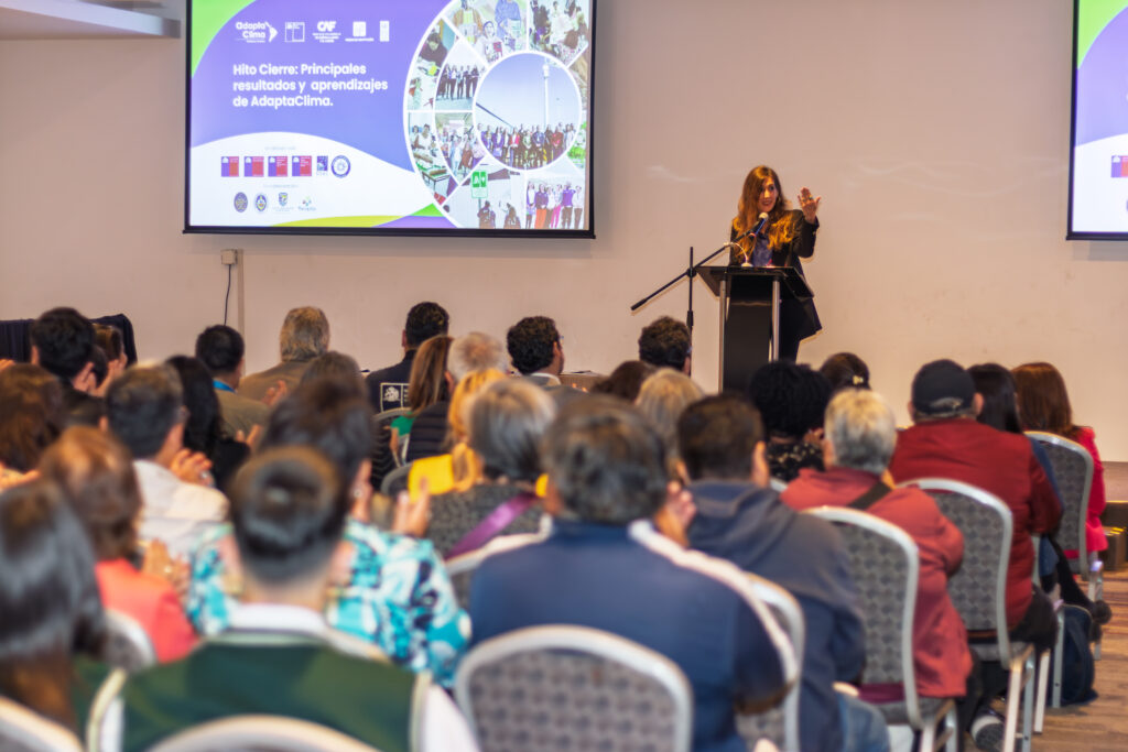 “Estamos presenciando el término del proyecto AdaptaClima, el cual que ha dejado importantes y grandes resultados que nos dejan muy contentos y contentas. Porque sabemos que va a haber una continuidad y una sostenibilidad de lo que ha logrado esta iniciativa”, destacó la Jefa del Departamento de Medio Ambiente y Desarrollo Sostenible del Programa de las Naciones Unidas para el Desarrollo en Chile, Paloma Toranzos.