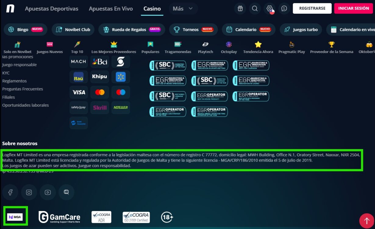 Novibet aterrizó en Chile con la seguridad de quien ya sabe jugar partidos grandes: llega con la licencia de la Malta Gaming Authority (n.º MGA/CRP/186/2010) y más de diez años de experiencia en Europa. Detrás está Logflex MT Limited, que adapta su propuesta al mercado local apostando por confianza, juego responsable y una experiencia ágil pensada para enganchar desde el primer minuto.